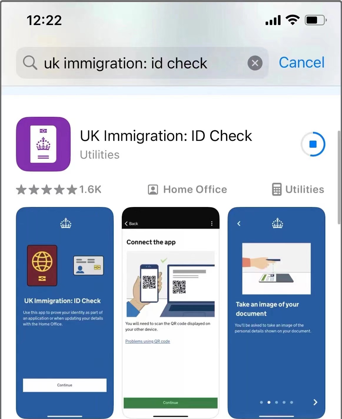 3、在手机应用商店下载APP“UK Immigration: ID Check”