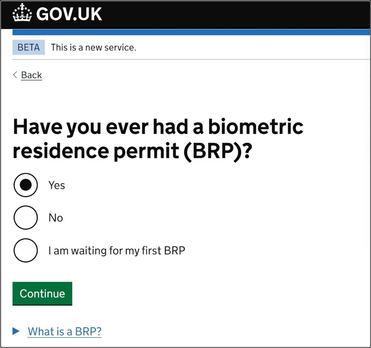 2、您此前持有过生物识别居留许可证(BRP)吗?