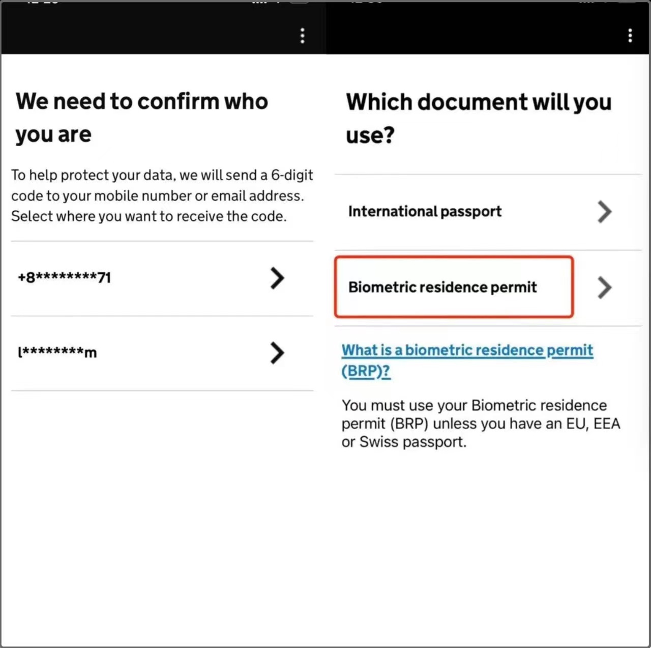 9、您使用的是哪种身份证件?我们以BRP为例