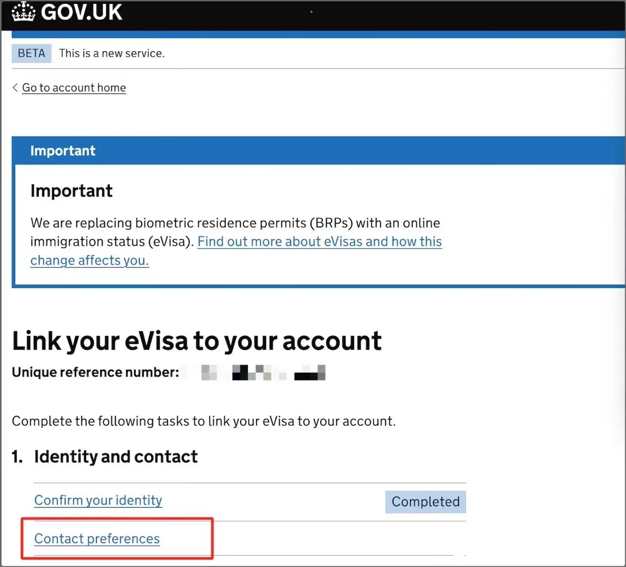 1、在APP上完成所有操作后,即完成身份确认(Confirm your identity),回到原UKVI网页,从“Contact preferences"开始完成后续操作,输入邮箱和手机号